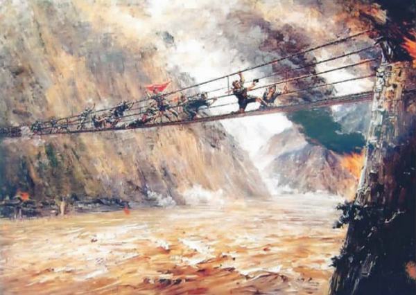 【油画《飞夺泸定桥》刘国枢作品,1959年】这幅《飞夺泸定桥》再现的就是镶嵌在中国革命史册之中的这一幕场景。