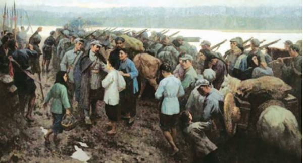 【油画《送别》靳尚谊作品,1959年】这幅《送别》聚焦的即是长征的起点———瑞金武阳镇老百姓在村头桥边依依不舍送别红军队伍。(文:范昕 摘自《文汇报》)