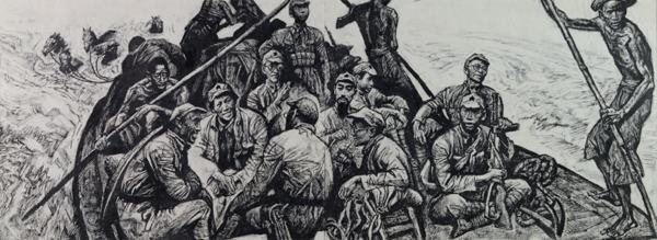 【版画《地球的红飘带》沈尧伊作品,1988年至1993年】《地球的红飘带》以独特的构思立意、精心的人物塑造以及深刻的艺术感染力,再现了视觉的长征。